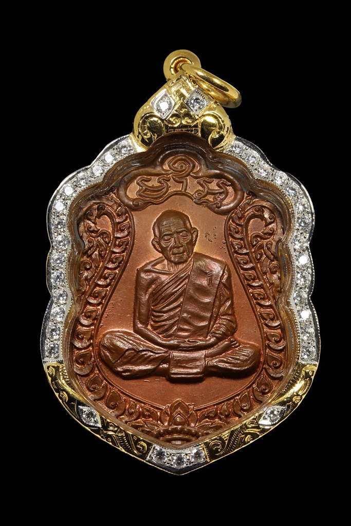 เหรียญ เสมา8รอบ หลวงปู่ทิม เนื้อทองแดง ตอกโค๊ตอุ พร้อมทองฝังเพชร