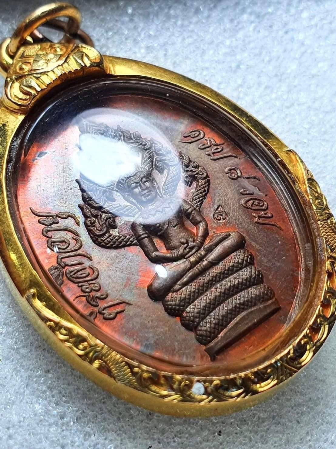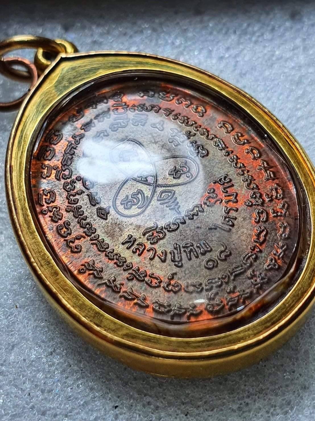 เหรียญปรกไตรมาส อุยาว หลวงปู่ทิมวัดละหารไร่ เนื้อทองแดง ตอกโค๊ตอิ เลี่ยมทอง