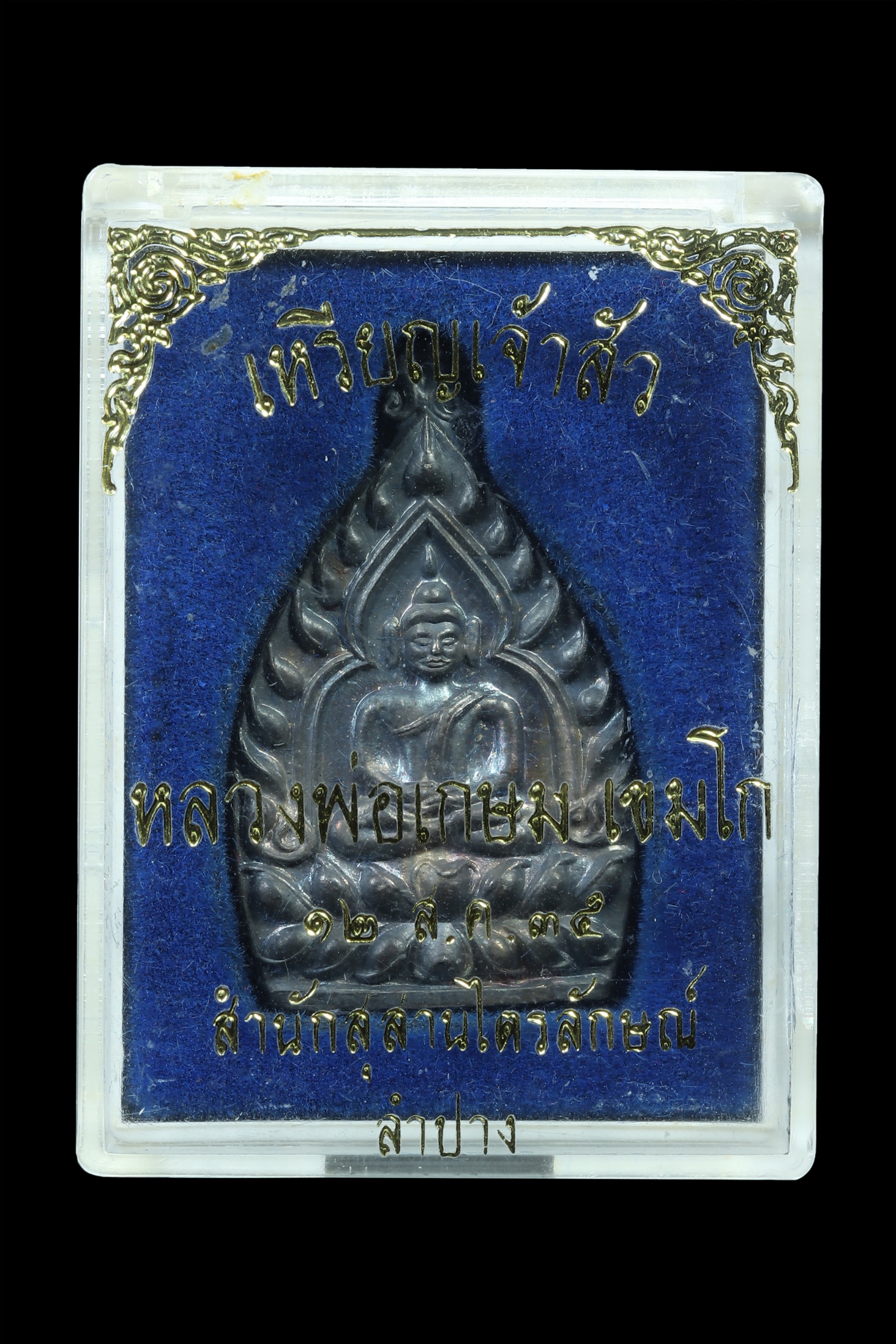 เหรียญเจ้าสัวหลวงพ่อเกษม เขมโก สุสานไตรลักษณ์ จังหวัดลำปาง ตอกโค้ดชัดเจน สวยเดิม เข้มขลังด้วยพุทธคุณ เหรียญเจ้าสัวหลวงพ่อเกษม เนื้อเงิน พิมพ์ใหญ่ โดยเนื้อเงินมีจัดสร้างไว้ด้วยกันทั้งหมด1,999 เหรียญ เจ้าสัวคือผู้ร่ำรวยด้วยเงินทองบารมี ค้าขาย ธุรกิจ เมตตา พระดีน่าใช้ พิธีดี เจตนาการสร้างดี หลวงพ่อเกษม ท่านอนุญาติให้จัดสร้างเหรียญเจ้าสัว พิธีอธิฐานจิตโดยมีพระเกจิคณาจารย์ในสมัยนั้นร่วมอนุโมทนาลงแผ่นจารทองคำ เงิน ทองแดง ให้กับคณะกรรมการจัดสร้างและให้ หลวงพ่อเปิ่น วัดบางพระ จังหวัดนครปฐม เมตตาเททองหล่อชนวนเหรียญเจ้าสัว ลาภ ผล พูลทวี ในพิธีครั้งนี้ด้วยหลวงพ่อเกษม ได้พิจารณารูปแบบและอธิษฐานจิต มนต์ชนวนเหรียญเจ้าสัวให้ถึง 2 ครั้ง คือใน วันพญาวัน ที่ 15 เม.ย. 35 และวันวิสาขบูชา ที่ 16 พ.ค. 35 ทั้งยังได้เมตตาอนุญาตเอาอักขระลงหลังเหรียญเจ้าสัว และทำพิธีพุทธาภิเษกในวันมหามงคล วันที่12 สิงหาคม 2535 ถือว่าสุดยอดท่านใดมีควรเก็บรักษาไว้ให้ดี ต่อไปจะเป็นตำนานตลอดกาล